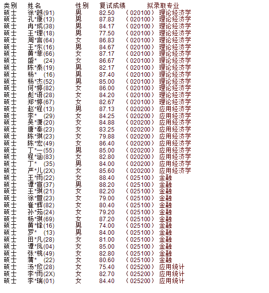 四川大学经济学院2026年推免生录取名单公示